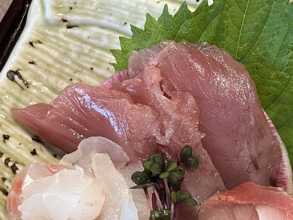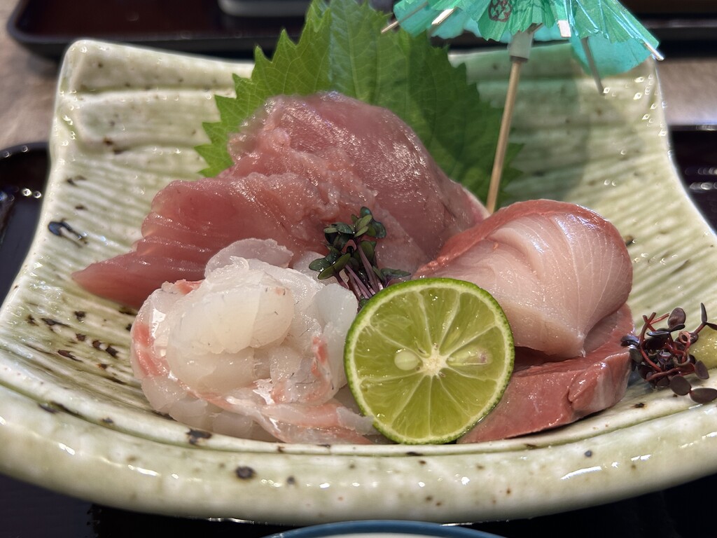 刺身3種盛り、小鉢、お味噌汁、ごはん、香の物の定食♪