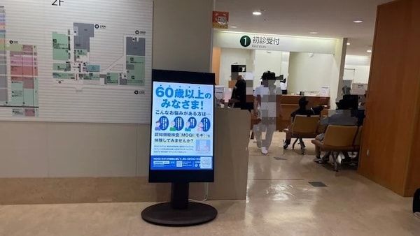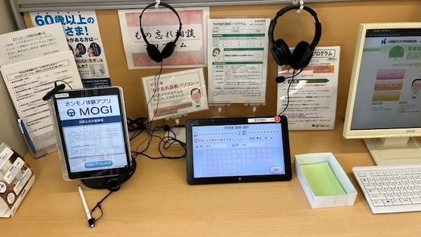 川崎医科大学附属病院では広く地域住民に利用してもらうために、病院玄関近くの患者図書室内にMOGIを設置した。通院患者や一般利用者が認知機能のプレスクリーニングとして気軽に利用しており、もの忘れ外来への受診を促すきっかけとなっているという。