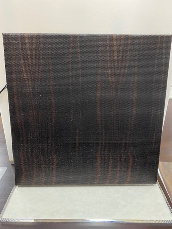 展示品の「黒檀・暖房畳(心温)」98,000円(税込)は表面に黒檀を用い、繊細な木目柄を表したという。
