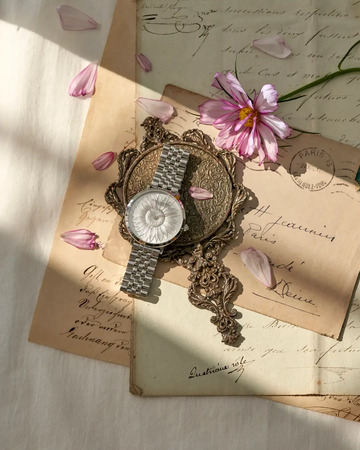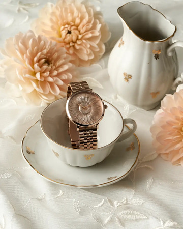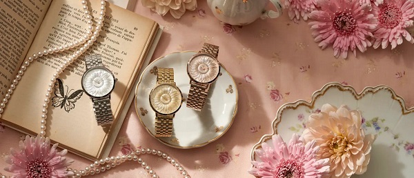 立体的に咲き誇る、35㎜ケース×メタルブレスの3Dフラワーウォッチで、手元を華やかに彩ってみては。