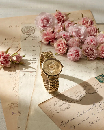 愛と忠実を象徴する立体的なフラワーモチーフウォッチ「3D FLOWER」。繊細な花びらとマイクロビーズをエッチングで表現したの3Dモチーフは、見る者を惹きつける優雅さと華やかさを兼ね備えている。