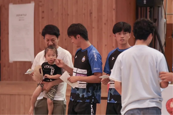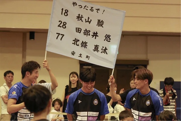 また、会場では手作りの選手名入りフラッグが披露される場面もあり、選手たちはそのフラッグにサインを書き入れ、地域の人々と直接交流。こうしたやり取りは、スポーツを通じて“クラブと地域が一つになれる”ことを実感できる大切な時間に。