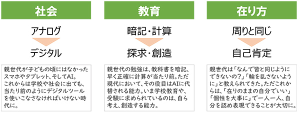 これからの社会を担う子どもたちには、親世代の価値観とは違った新しい時代の変化の中で、自らの可能性を広げる機会が求められている。