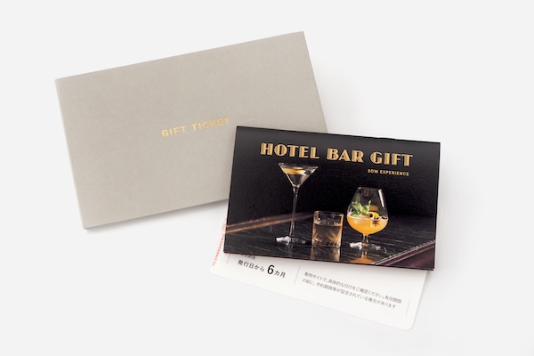 「ホテルバーギフト」17,380円(税込)は、都内のホテルバーでの飲食に使える食事券。洗練された空間で、丁寧に入れられたお酒やノンアルコールカクテルを楽しめる。