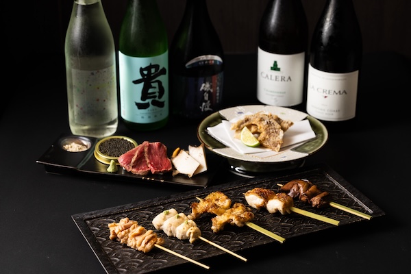また、極上の地鶏を使用した串と逸品の「極み贅沢コース」13,000円(税込)も楽しめる。こちらは、先付けに蒸しササミサラダ、厳選かしわ串・炭薫つくね串・濃味レバー串を含む8本の串、フカヒレ唐揚げ・天草とらふぐ・和牛ヒレタタキといった季節の逸品、さらに鶏らーめん、特製プリンのコースとなっている。