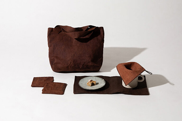 土佐清水市の「yurukuru」は、夫婦で柿渋染めや藍染めを行い、カバンやエプロンなど生活雑貨を中心に製作している。