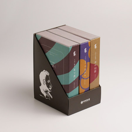 文庫型のパッケージを採用した新商品「文庫型ラフカディオ珈琲」は、八雲の物語×怪談×コーヒーをテーマに「母の幻影」「つながり」「耳で書く」の全3種類が用意されている。