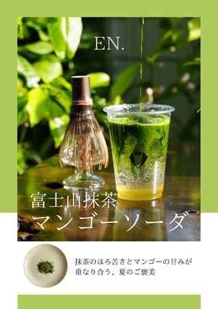 抹茶のほろ苦さとマンゴーの甘味が重なり合う「富士山抹茶マンゴーソーダ」、