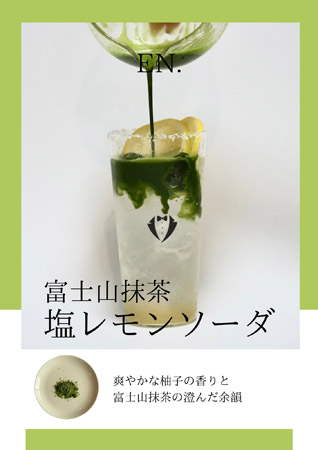 爽やかな柚子の香りと富士山抹茶の澄んだ余韻が楽しめる「富士山抹茶塩レモンソーダ」などのドリンクと、