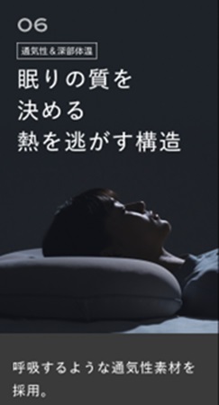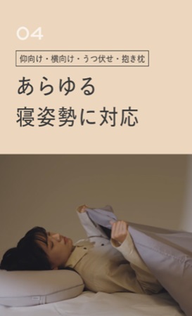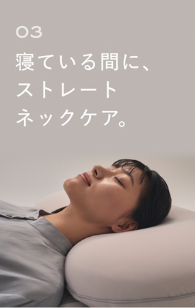 また、睡眠科学に基づいた設計もポイント。中央部分の弾力性を調整し、仰向けでも横向きでも、頭から首にかけてのラインを自然な状態にキープする。スムーズな寝返りを促して理想的な寝姿勢をサポートし、睡眠中の身体への負担を軽減する。