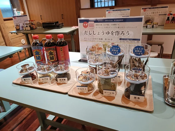 「利きしょうゆとせんべい焼き体験」「オリジナルのだししょうゆ作り」「しょうゆ麹作り」「金笛の人気スイーツしょうゆづくり」など、しょうゆを“もっとディープに”楽しむワークショップがいろいろ。「金笛しょうゆパーク」HPから予約しよう。