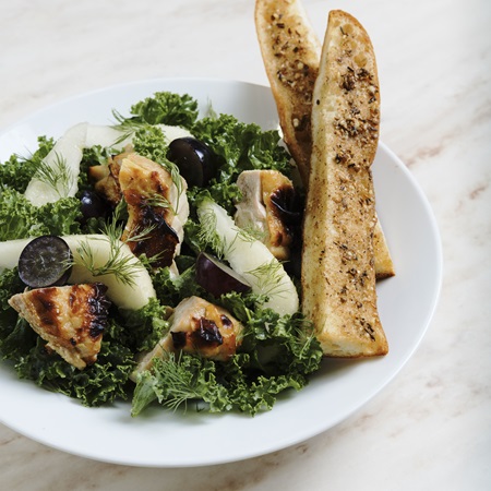 「ハニーマスタードチキンと洋梨、巨峰のケールサラダ ベルガモットドレッシングで」、