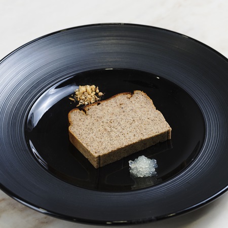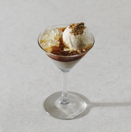 「ほうじ茶ババロアと紅茶のジュレ、ベルガモットとデュカのミニパフェ」、