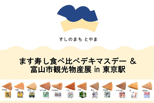 東京駅地下1階イベントスペース「スクエアゼロ」にて、富山の魅力を一堂に集めたイベント「ます寿し食べ比べデキマスデー & 富山市観光物産展 in 東京駅」が、9月27日(土)に開催される。