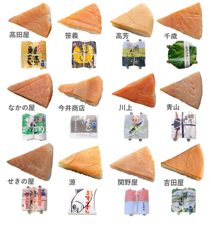 参加店舗は、富山ます寿し協同組合加盟12店。千歳、青山総本舗、吉田屋鱒寿し本舗、川上鱒寿し店、今井商店、元祖関野屋、高田屋、元祖せきの屋、高芳、なかの屋、味の笹義、源だ。