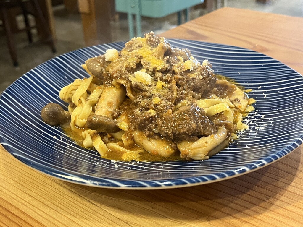 阿波黒牛煮込みとキノコのボロネーゼフィットチーネ