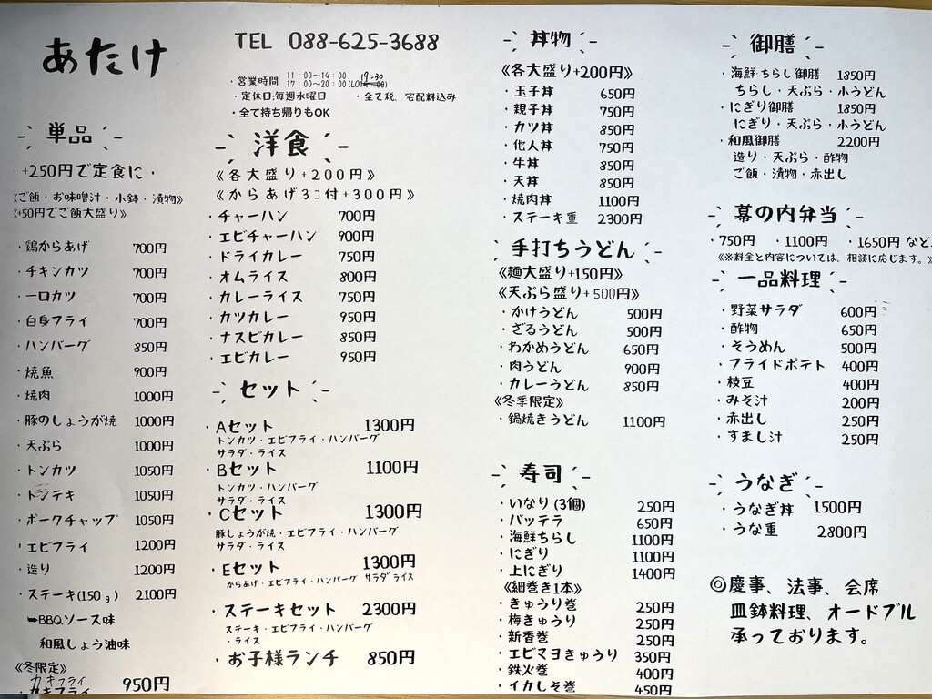 徳島市昭和町のあたけ食堂さんが