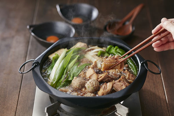 「鶏すきやき」には、様々な魅力がある。まず、牛肉よりも安価な鶏肉ならリーズナブルで家計に安心。日々の食卓にも登場させやすい“身近なごちそう”である。また、もも肉・むね肉・手羽・つくねなど、部位ごとの食感、旨みが楽しめるのも魅力。さらに割下との相性が良いのも特徴。鶏の脂と甘辛い割下が合わさることで、コクと深みのある味わいが生まれるのだ。調理も手軽で、家庭でも簡単に作れるため、季節の定番料理としても人気上昇中。銘柄鶏を使えば地域性も演出できるため、外食メニューとしても展開しやすいのだ。