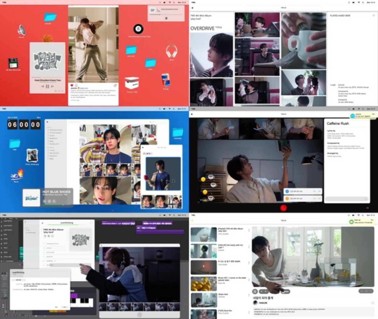 「TWS」は8日、HYBE LABELSのYouTubeチャンネルを通じて4thミニアルバム「play hard」のハイライトメドレー映像を公開しました。 コンピューター画面を形象化した映像の中で6人のメンバーは、アイコンや写真フォルダー、音楽プレイヤーなど様々なインターフェースを泳ぐように行き来しながら、ニューアルバムの収録曲の一部を興味深く披露しています。