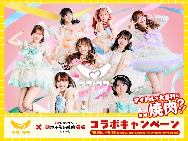 「0秒レモンサワー 仙台ホルモン焼肉酒場 ときわ亭」では、大喜利もできるバラエティーアイドルとして人気上昇中の8人組アイドルグループ「ラフ×ラフ」の初のライブハウスツアーに合わせ、4つの開催都市の4店舗でコラボキャンペーンを開催する。