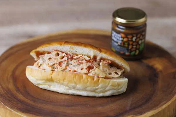 たらこのプチプチ、ごぼうの歯ごたえ、ナッツバターベースの「『UMAMI BUTTER SPREAD』-かつお醤油-」のコクが調和し、和の定番「きんぴらごぼう」が和洋をつなぐ新しい味わいへと生まれ変わる。