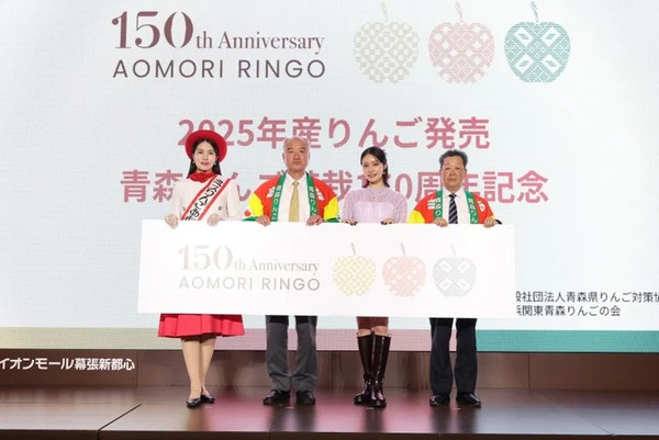 青青森県りんご対策協議会が、青森県にりんごが植えられてから今年で150周年であることを記念し、10月12日(日)にイオンモール幕張新都心店 グランドコートにて、「青森りんご植栽150周年記念イベント」を開催。青森りんごアンバサダーの王林さんや、第21代ミスりんごあおもりの下田来渚さんがゲストとして登場した。