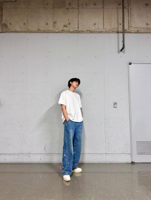 写真には、ホワイトのTシャツに花のプリントがあるジーンズをマッチさせたパク・ヒョンシクの姿が盛り込まれている。