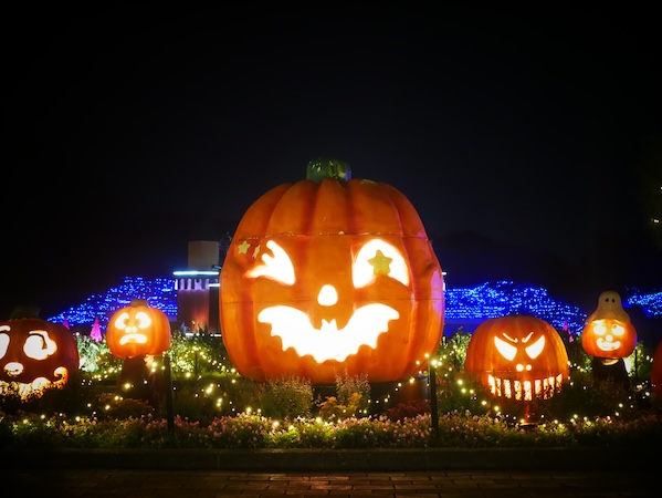 「森のハロウィンナイト」は、会場内での約55万球のイルミネーションやカラーライトアップをはじめ、ハロウィンにちなんだ“巨大なカボチャ”や“お化け”などのオブジェやアート作品を見ることができるイベント。