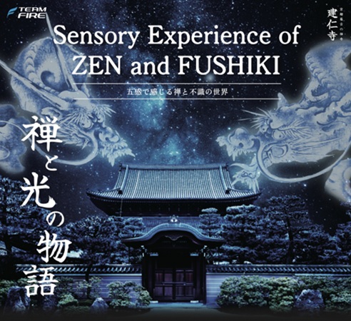 「Sensory Experience of ZEN and FUSHIKI ~五感で感じる禅と不識の世界~」は、重要文化財を有する建仁寺の方丈前庭を舞台に、プロジェクションマッピングと幻想的なライトアップを実施する画期的な取り組みだ。