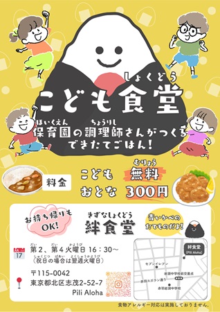 保育園を運営する絆友会は、東京都北区で子どもの居場所づくりを目的に「絆食堂」を開始。保育関係者と調理師が協力し、温かく栄養満点で安全・安心な食事を届ける。