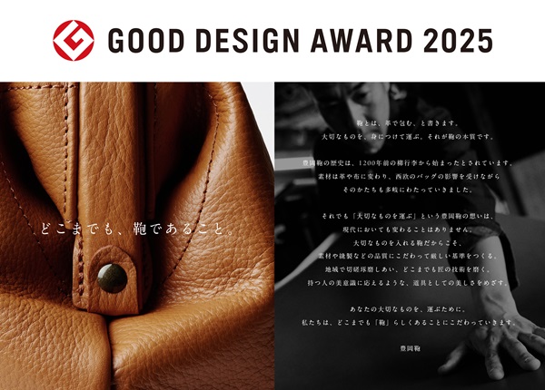 兵庫県鞄工業組合ならびに兵庫県豊岡市が、2025年度グッドデザイン賞を受賞した。