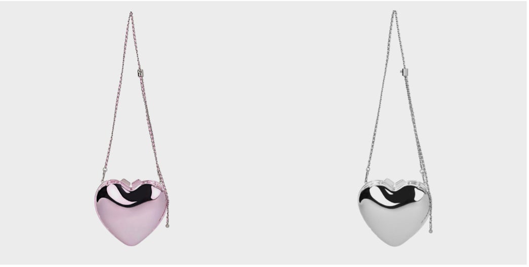 カジュアルな「ハート シアーレーススニーカー」は、繊細なレースのディテールが恋の季節を思わせ、リラックスしたデートシーンにぴったりのアイテムです。ハートのバルーンをイメージした「メタリックハート クラッチ」は、ノスタルジックな魅力を感じさせるデザインで、コーディネートに遊び心を添えます。