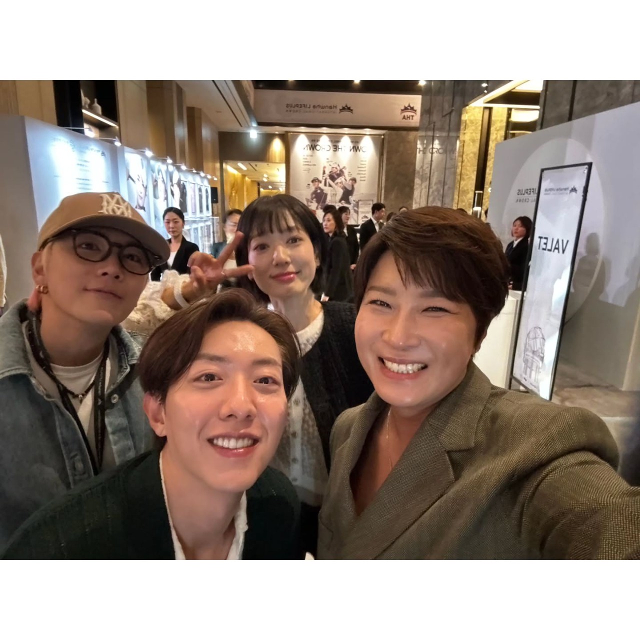 公開された写真には、イ・ホンギが、「CNBLUE」のイ・ジョンシンや、元ゴルフ選手のパク・セリ監督などと一緒にポーズをとっています。