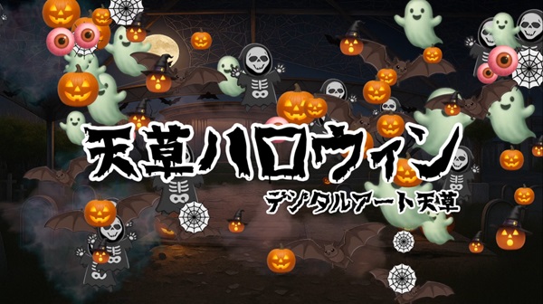 また、デジタルアート天草は、地域との積極的な交流を目的に、当日13:00~15:00に実施される「トリックorトリート」にも参加。デジタルアート天草の事務所スペースにて、来場した子どもたちにお菓子を配布し、地域社会の一員としてイベントを盛り上げる。