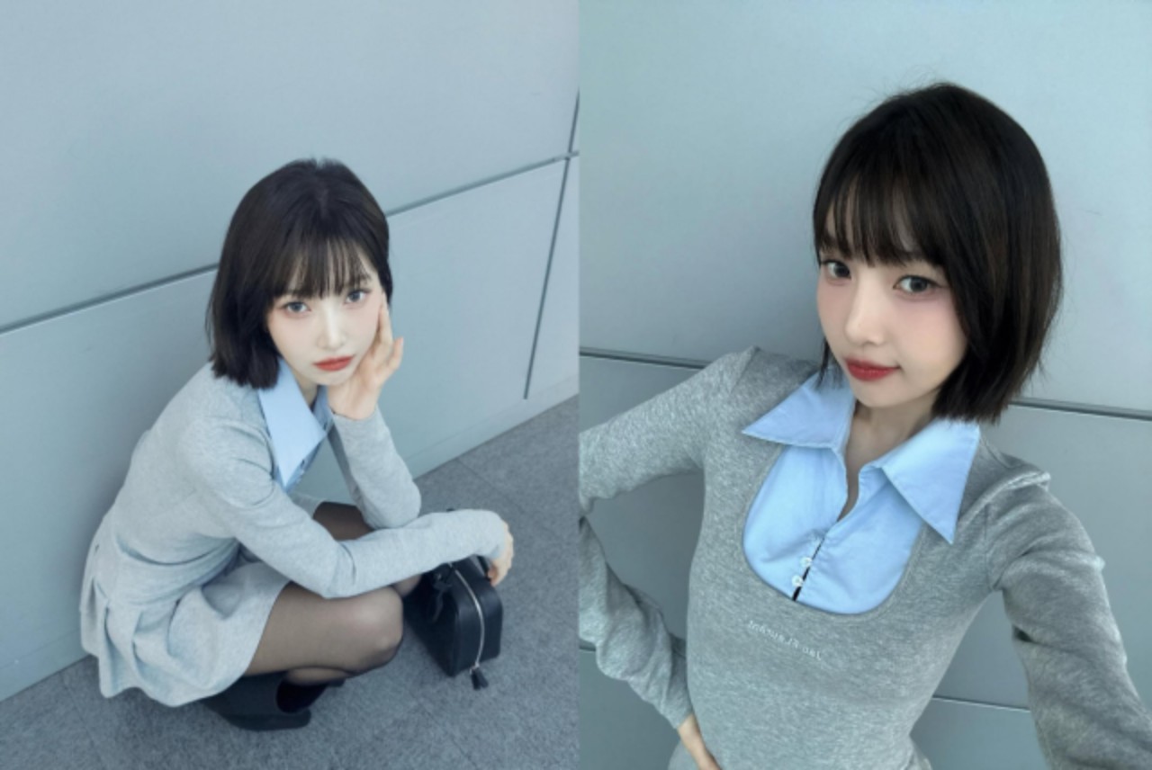 」というコメントとともに、写真を公開した。写真の中で彼はグレーのニット素材のミニワンピースに水色のシャツが配色されたデザインを合わせて都会的ながらも洗練された雰囲気をかもし出しています。