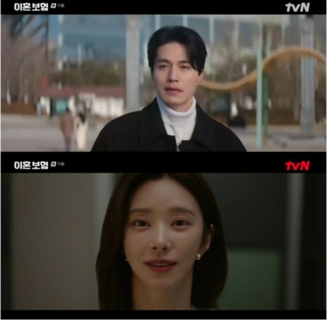 「離婚保険」11話(視聴率0.9%)では、ギジュン(イ・ドンウク)がハンドゥル(イ・ジュビン)に前妻との結婚生活を言及する様子が描かれた。