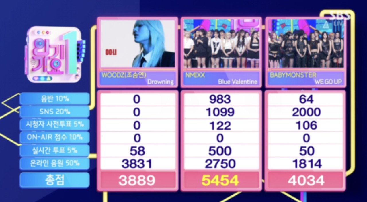 韓国で26日放送された「SBS人気歌謡」で「NMIXX」は、13日にリリースされた初のフルアルバムのタイトル曲「Blue Valentine」で、WOODZ(チョ・スンヨン)の「Drowning」、「BABYMONSTER」の「We Go Up」を抑え、10月最終週の1位を獲得しました。