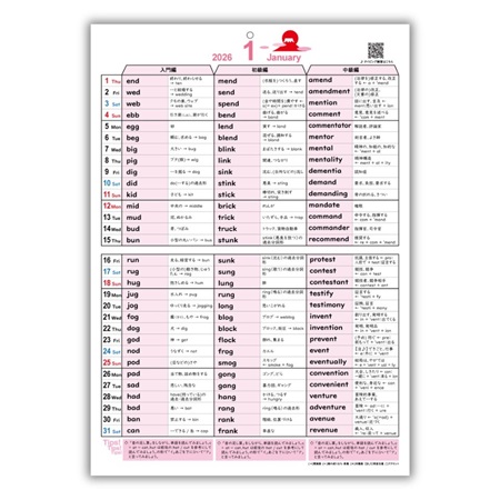 RISE English Course 英単語カレンダー2026詳細:https://www.rise-plus.net/eigo/eitangocalender