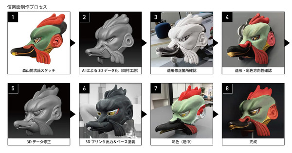 さらに、3Dプリンタで出力した部品に、GK京都のデザイナーによる彩色技術と、現代の塗料技術を駆使した塗装を施し、重厚かつ歴史の重みを感じられる質感を表現しながら軽量な仮面を制作。こうして、現代テクノロジーと古代芸能の精神が融合した、新たな仮面が誕生した。