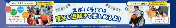 アスリートと交流ができるスポーツ体験や教室のほか、車いすユーザーでもできるように高さを調整したスーパーボールすくい、目が見えなくても音を聞いてできる射的など、インクルーシブな工夫が詰まった「スポパラ!」。屋台もあり、だれもがみんなで楽しめるイベントを目指しているという。