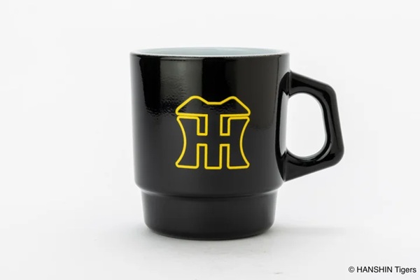 また、マグのもう一面には、球団創設90周年、2025年シーズンのキャップをイメージして、ブラックカラーの阪神タイガース「HTマーク」をイエローの縁取りでデザイン。
