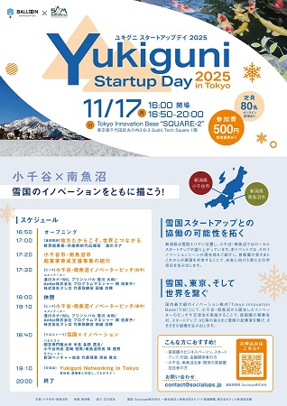 11月17日(月)、有楽町駅そばのTokyo Innovation Baseにて、新潟県小千谷市と南魚沼市が主催する「Yukiguni Startup Day 2025」が開催される。