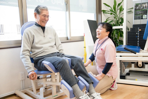 リハビリデイサービス(介護保険)としては、要支援・要介護の人やその予防が必要な人に、転倒予防・歩行改善・筋力維持を狙った小集団プログラムを提供。関節疾患・衰弱・転倒といった主要リスクに的を絞り、在宅生活の自立度を高める。