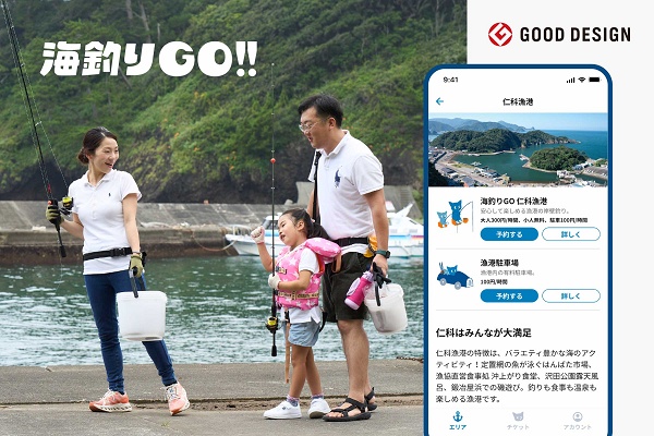 「海釣りGO」は釣り人と地域・漁業者の共存を目指す、新しい釣り場管理サービス。スマートフォンアプリ「UMIGO」を介して釣り場と駐車場の事前予約を行い、時間単位の利用料を港の管理者に届けることができる。これにより、従来問題となっていたマナー違反、ゴミの不法投棄、駐車トラブルなどを防ぐ。