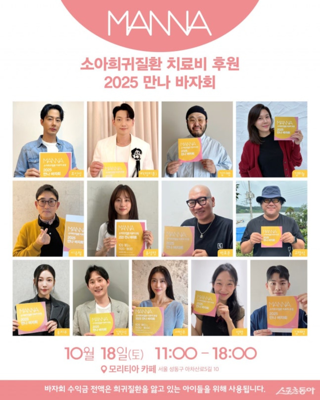 チョ・インソン、キム・ギバン、キム・ハヌル、コ・チャンソク、Rain(ピ)、パク・ヒョジュン、イ・スンチョル、ユン・サンジョン、ソンリョン、ソ・ミンジュ、キム・ミンソク、キム・テジョン、ソン・ジウ、キム・ホンギョンなどのスターたちが参加した“小児希少疾患治療費支援バザー”が盛況のうちに終了しました。