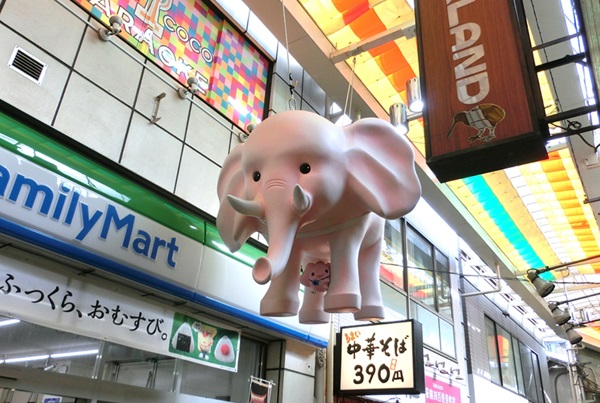 西荻窪のおすすめスポットは2つ。駅南口を出てすぐのアーケード天井からぶら下がっている「ピンクの象」は地元で長く愛されており、現在は3代目。9月の荻窪八幡神社の例大祭では子供たちに引かれて街中を練り歩く。