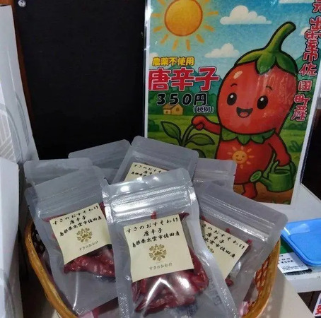 自社栽培の農産物販売(唐辛子)なども実施。近くを訪れた際は立ち寄ってみよう。