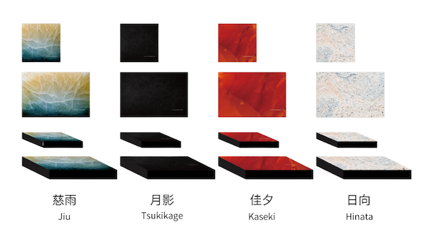 「慈雨 -Jiu-」は、万物を育てる恵みの雨のように、日常へ潤いをもたらすギフトに。「月影 -Tsukikage-」は、月あかりが映し出す陰影のように、そっと寄り添うギフトに。「佳夕 -Kaseki-」は、美しい夕焼けのように、特別な感動を分かち合うギフトに。「日向 -Hinata-」は、陽の光が差し込むように、心を明るく照らすギフトに。