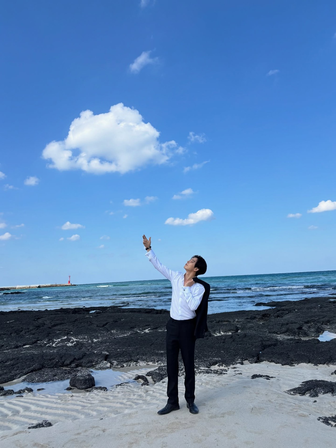 キム・ジェウクは10月30日、自身のInstagramに「Jeju island」というコメントと共に写真を投稿しました。