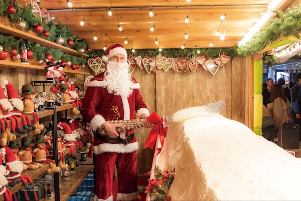 今年もサンタクロースが特製の巨大ナイフで全長約4mのシュトレンを入刀し、切り分けられたシュトレンは実際に販売される。